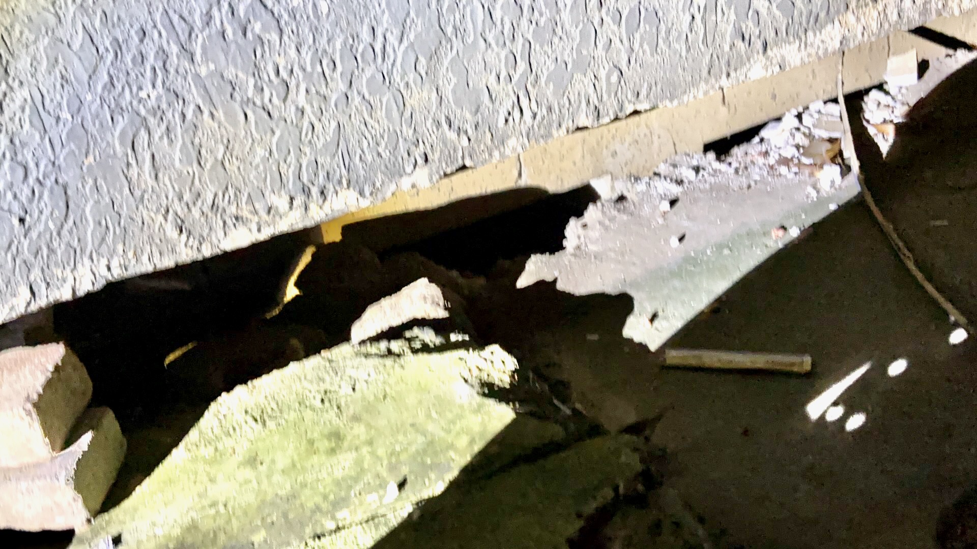 点点藏在了我们住的楼的正下方的一个「洞」中,怀疑是知道我们在这但是不知道怎么上楼。这个洞也很有说法,整个小区的楼的边缘都有一层缝,往里面纵深有三四米。