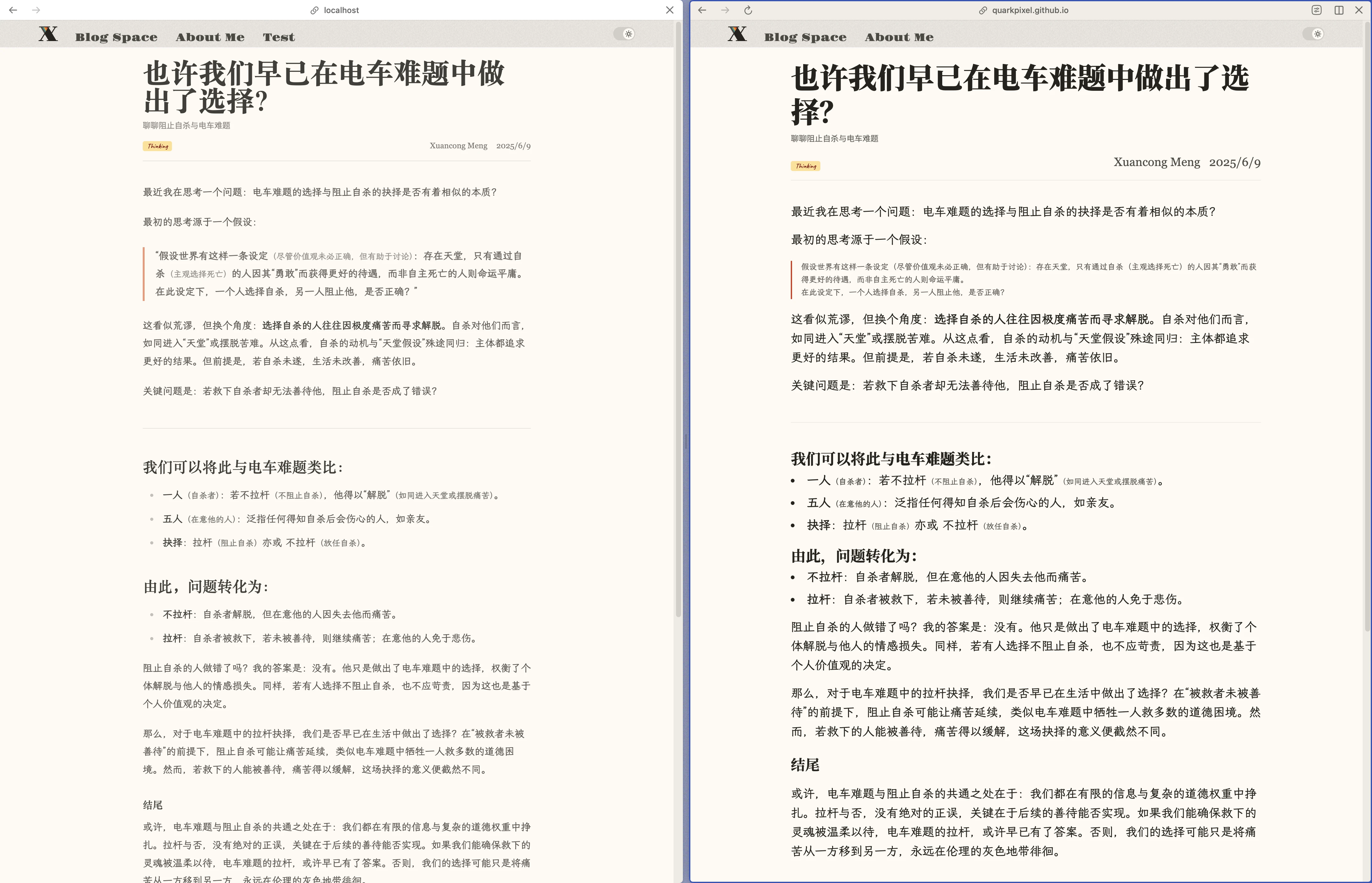 许久之前就无法忍受网页的排版。作为一个博客网站,文字的呈现效果是至关重要的。在之前介绍网站使用的技术栈时就提到我使用了 Skeleton 作为 UI 框架。然而这个框架在排版方面的表现很不尽如人意。我趁着最近在大量升级网站的机会,将排版系统从 Skeleton + MDsveX 自定义样式转向了 Tailwind Typography + MDsveX 默认对接。